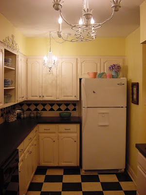 Your kitchen is great! I think if you change the checker board floor it would really make it, even though as it is, it's gorgeous, I love it and I'm so glad I just passed by. We did a complete re- do of our kitchen, which also had a checker board floor like yours, it wasn't put on the right way either...but now it's black Italian tile and it looks amazing! I will show it someday, the before and after look.