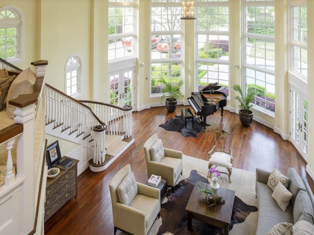 I'm with you on everything you said. But in this part of town, it's all about more more more. A friend of mine who designs for those huge homes said "what do you do after 10,00 square feet? Bowling?!!" Funny thing is, those people are NEVER home, and certainly don't cook, or probably even entertain! Maybe once a year for a lavish holiday party that's completely catered with dozens of servants. I love most of the decor but this house needs a lot more fabric to warm those rooms up! And out with those spindles, geez.