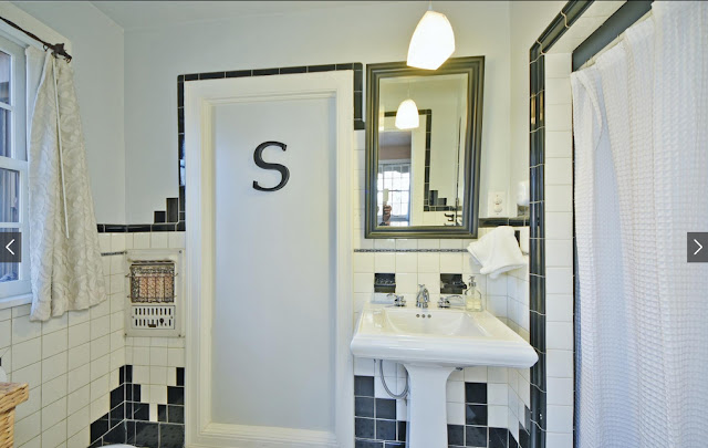 I always love an an original tiled bathroom. The layout is kind of funky but I don't care.